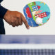 Sailboat and Hot Air Balloon with Cityscape Ping-Pong Paddle