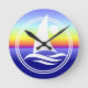 Nautical themed wall clocks that features a white sailboat design on a rainbow colored background. These sailboat clocks would be perfect in a beach home, a beach business, a beach side motel, or your office. They also make great gifts for those who love sailing and sailboats.
