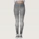 These gray leggings are decorated with a black and white photo of a sailboat floating on the water, against a gray sky.