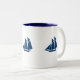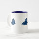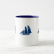 Coffee Mug shown in white/navy with cute sailboat detail. Customize this item,you can choose your colors and style.