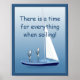 A graphic sailboat illustration with two sailors praying on a poster by artist/designer Charmaine Paulson. The customizable text says “There is a time for everything when sailing! ©2013charmainepaulson