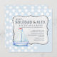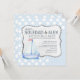 An adorable, nautical-theme, baby shower invitation with a light blue background and white polka dots. A decorative, rope panel holds the wording for your party.