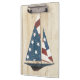 © Avery Tillmon / Wild Apple. Sailboat with American Flag on Wood background