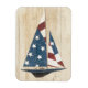 © Avery Tillmon / Wild Apple. Sailboat with American Flag on Wood background