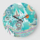 Sailboats and Sea Creatures Abstract Beachy Art Large Clock