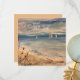 Ocean scene with sailboats in the distance and sandpipers on the beach. Impressionistic painting produces a soothing, calming shore feeling. Beach decor, summer vacation memories.