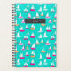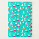 Pattern with illustration of pink and yellow sailboats over teal background. Personalize the text on front.