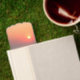 A double-sided bookmark featuring ships sailing away into the sunset. Oia, Greece