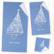 Add your own boat name to this modern blue and white sailing boat design. Perfect for a boat, lake or beach house or for anyone who loves sailing.