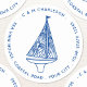 A sailing boat design with a nautical feel. Change the curved name and address text to customize.