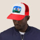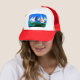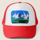 Classic trucker hat in red and white with a sailing boats motif, made from a handpainted paper collage.