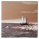 An abstract art design of a sail boat heading towards the harbour in the late evening. Wales.