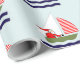 Unique sailing themed holiday gift wrap featuring Santa in a sailboat pattern.