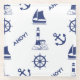 Sailing Illustrative Big Pattern Navy Blue Glass Coaster