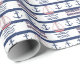 Premium wrapping paper featuring a repeating nautical pattern of sailboats, anchors, waves, and "Sailing Into Retirement" text on navy stripes—perfect for celebrating retirement milestones.