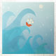 A sailing boat perches on top of a huge wave in a turquoise blue ocean under the moon and stars. Original art by Nic Squirrell.