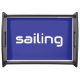This sporty, modern design features horizontal white sleek SAILING text against a deep blue background. The text and colors in this design can be personalized.