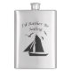 A graphic illustration of sailboat by artist/designer Charmaine Paulson on a flask. The flask has the text “I'd rather be sailing” ©2013charmainepaulson