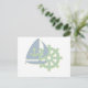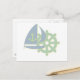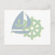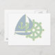 Sail boat and steering wheel postcard.