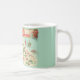 A vintage colorful postcard map of the Bahama Islands with wonderful small illustrations repurposed on a coffee mug.