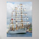Parade of sail of the magnificent full-rigged sailing ship Cuauhtémoc from Mexico while entering Bergen harbor during the Tall Ship Race is captured on this photograph.