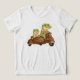Get ready for a swamp-tastic adventure! This charming illustration features a duo of happy alligators cruising in style on a vintage 'Rocket Deluxe' brown scooter with a sidecar. Wearing their 'Sailor Ace' and 'First Mate' t-shirts, these cute reptiles are perfect for little explorers. Whether it's for a nursery, a birthday gift, or everyday fun, this retro-inspired design adds a touch of whimsical adventure to t-shirts, mugs, and caps. A must-have for fans of crocodiles, vintage vehicles, and adorable animal art!"