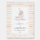 This birthday welcome sign features a timeless beige tan stripe design with a sweet watercolour sailor teddy bear illustration. The script "welcome" heading is an image that cannot be edited. All of the other text is fully editable. For more advanced customization of this design, simply select the "Customize It" button above.