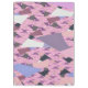 An abstract art design in pastel colours of boat sails against a sunset sky.