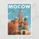 A vibrant vintage-style travel poster featuring the iconic Saint Basil's Cathedral in Moscow, Russia. The illustration highlights the cathedral's famous colorful domes and unique architecture against a clear blue sky with a plane flying overhead, leaving a trail. This retro design is perfect for those who love European travel, historic landmarks, or the rich culture of Russia. It evokes a sense of adventure and wonder, making it an ideal piece of art for any space.