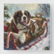 Saint Bernard Dog Christmas Festive Square Wall Clock