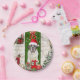 Saint Bernard Dog Christmas sitting outside decorated home with Christmas wreath, Christmas tree is a perfect Christmas gift idea for dog lovers.