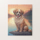 Saint Bernard dog, sitting by beautiful lake. Lots of pet and scenery designs in my stores. Add this design to other products. Add text.