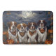 Unleash the spooky spirit with this eerie Halloween design featuring a pack of dogs under a dark, moonlit sky, surrounded by flying bats and glowing pumpkins. Perfect for those who love a touch of frightful fun with their furry friends!