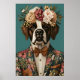 Saint Bernard In Suit Poster, Saint Bernard Portrait, St Bernard Oil Painting, Animal Head Human Body Poster, Funny Dog Poster, Pet Wall Art