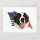 USA! America! Shout your pride with this awesome flag Patriotic background with this AKC dog breed Saint Bernard in the forefront. Show your pride with this design on a t-shirt, mug, and much, much more!