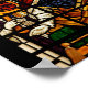 Lovely details in this photographic image of a stained glass window featuring Saint Cecilia - the patron saint of music, with pipe organ and cherub/child holding harp.