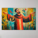 This poster portrays Saint Francis of Assisi with open arms, surrounded by flowers and birds. Known for his love of nature and devotion to God, Francis invites us to see creation as a gift. A bright and inspiring image for homes, churches, or classrooms, it encourages faith, joy, and care for the world around us.
