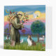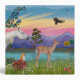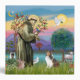 Saint Francis, the patron saint of animals is shown here with a Shetland Sheepdog, a raccoon, a rabbit, a dove of peace, a lamb and a blue bird (not to mention the butterfly.)