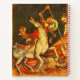 Elaboratıon with old aged brown parchment effects from early Renaissance Italian painter VITALE DA BOLOGNA St George 's Battle with the Dragon around 1350 Tempera on wood, Pinacoteca Nazionale, Bologna.