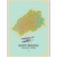 Saint Helena British Overseas Territory map decorated with a beautiful old bi plane.