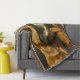 A quality printed throw has its advantages. This is a much finer weave throw than its loopier cousins, and though lighter, it is worth the investment for custom room accessorizing. The back is much prettier than the typical brown, and the fringe on the long sides very vivid, the selvage nicely done. Before photographing, I washed the throw in cold water, delicate, with a thicker woven throw the same size. On tumble dry low, this throw was dry in half the time as the other. This is a very practical quality if you use throws for furniture covers or to wrap up in frequently. The sleekness of the fabric makes it a great layer for accenting or protecting without the feeling of sitting on too much stuff. Perfect for napping or when you feel a light chill coming on. The color printing is beautiful and on this fabric, matched the design and color of my Photoshop image. This is an advantage for blending room fabrics and colors. The fringe on the short sides prints the colors from the design image and therefore varies from the side fringe. I streaked a white fractal line through the plaid pattern to give the illusion of weaving. This printed as crisp as an illusory thread, and put some white in the short side fringe, showing another advantage of print vs loomed- for artistic purposes, line lines, detail, and color integrity can be planned and preserved. My loomed throws have color limitations and more of a needlepoint texture. Print throws reproduce an exact image. The throw felt a little stiff straight out of the package, but this went away in the first delicate wash. Of course I searched the wash water for ink or bleeding and there was none.