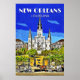 Saint Louis Cathedral features a vintage retro art travel image which shows the famous cathedral in New Orleans, Louisiana.