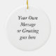 Lightweight, smooth, pure white ornament with nice sheen. Perfect size to be seen from across the room ... and to attract closer inspection! Price was great for ordering enough for the whole family! Clear, bold black design just as requested. Matches the order exactly. Just so nice!