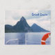 A view from a boat of clouds moving in, as St. Lucia's famous twin peaks, the Pitons, rise out of the Caribbean Sea.