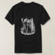 My 11 yo wore adult XL (5’7” 165#). The 8yo is small framed. She wore adult small and tied it in the back. Grandma wore adult large with long sleeve shirt underneath. Tall girl adult medium. Dark haired male adult large. Good quality dark Heather gray, Gildan brand shirt. -it was next up from basic choice and cost about $20 per shirt. Not too thick or thin. Washed and dried well, no major shrinkage. Not see-through. Can wear a bra under it fine. Screen print is just as shown and well done, front and back.