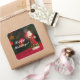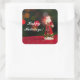 Square sticker with an image of a vintage figurine of Saint Nicholas on a background of red Christmas lights on green and a customizable holiday sentiment. See matching greeting card and wrapping paper. See the entire Christmas Sticker collection under the CARDS & STICKERS category in the HOLIDAYS section.