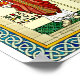This is a reproduction of an original painting by A.R. Danziger depicting Saint Ninian in the style of Celtic illuminated manuscripts. St. Ninian was known as the first Apostle to the Scotland and preached the gospel to the Southern Picts before his death in 432 A.D. He founded a church and monastery at Whithorn. He is shown standing in the archway of Whithorn Priory holding the crozier of one of his medieval successors and with his bell the "Clogrinny" which was used to summon monks to prayer. The cross on his gospel book is taken from the inscription on the Peter Stone at Whithorn.