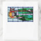 Rectangular sticker to match our "Saint Patrick Window" greeting card with an image of a stained glass window with Saint Patrick detail in St. Benin’s church, Kilbeggan, Ireland.
