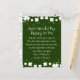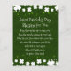 Inspirational Saint Patrick's Day Blessing postcard depicts a dark green background with white shamrocks. It features the beloved Irish Blessing. "MAY THE ROAD rise up to meet you. MAY THE WIND be always at your back. MAY THE SUN shine warm upon your face; the rains fall soft upon your fields and until we meet again, MAY GOD HOLD YOU in the palm of His hand."_