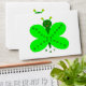 This envelope features a cartoon of a cheerful butterfly with a dark green body and fluorescent green wings. On the wings is darker green text that says “Happy St Pats”. This friendly little butterfly is designed to appeal to all ages and is ready and waiting to wish someone a happy St Patrick’s Day. There is customizable text on the back so you can personalize it. There is room on the front to affix postage. This envelope will hold any A7 sized greeting card. .